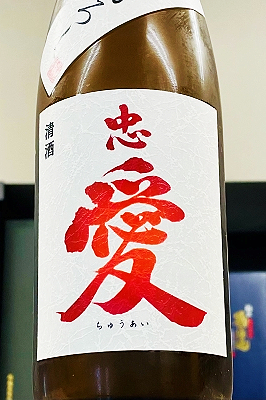 酒造好適米 『美山錦』 を55%まで磨いて丁寧に醸された純米吟醸酒の中取り部分を無濾過生原酒のまま瓶詰め少量の滓を絡めています。優しい果実香がほのかに漂います。ひと口含むとメロン系の旨味が口中いっぱいに広がります。比較的キレが良いので日本酒度の数値よりも甘く感じないかもしれません。開栓後空気に触れながら旨味がグングンUPしていきます。まさに 「忠愛」 らしい柔らかな水が織りなすトロっとした旨味と甘味が活きた仕上がりです。冷酒でキリッとお楽しみください!!