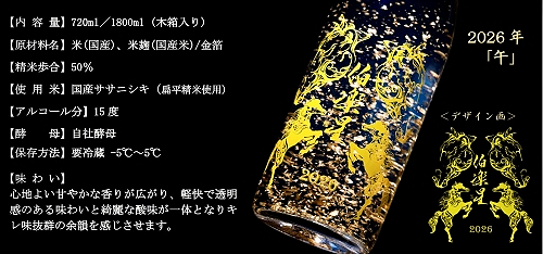 伯楽星 2026年 午 干支ボトル 純米大吟醸 金箔酒 720ml(桐箱入り)